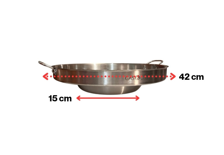 Cocina con confianza y durabilidad. Este disco de acero inoxidable 304 calibre 20 (0.9 mm) es ideal para preparar carnes, mariscos, verduras y guisos. Su tamaño de 42 cm lo hace perfecto para reuniones familiares o cocina al aire libre.